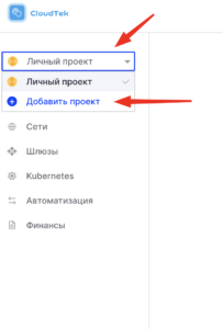 Для переключения между пространствами проектов используется выпадающее окно в горизонтальном меню, в верхней части панели. Здесь же теперь будет опция +Добавить проект.