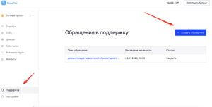Чтобы создать обращение, вам нужно перейти в раздел Поддержка и выбрать Создать обращение.